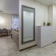 Прихожая, стала образцом эффективного использования пространства с вместительным встроенным шкафом, в котором вы можете разместить свои любимые вещи.