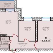 В продаже 2 комнатная квартира в новостройке г. Смолевичи. Площадь квартиры 52.8м2, просторная кухня 13.6 м2.