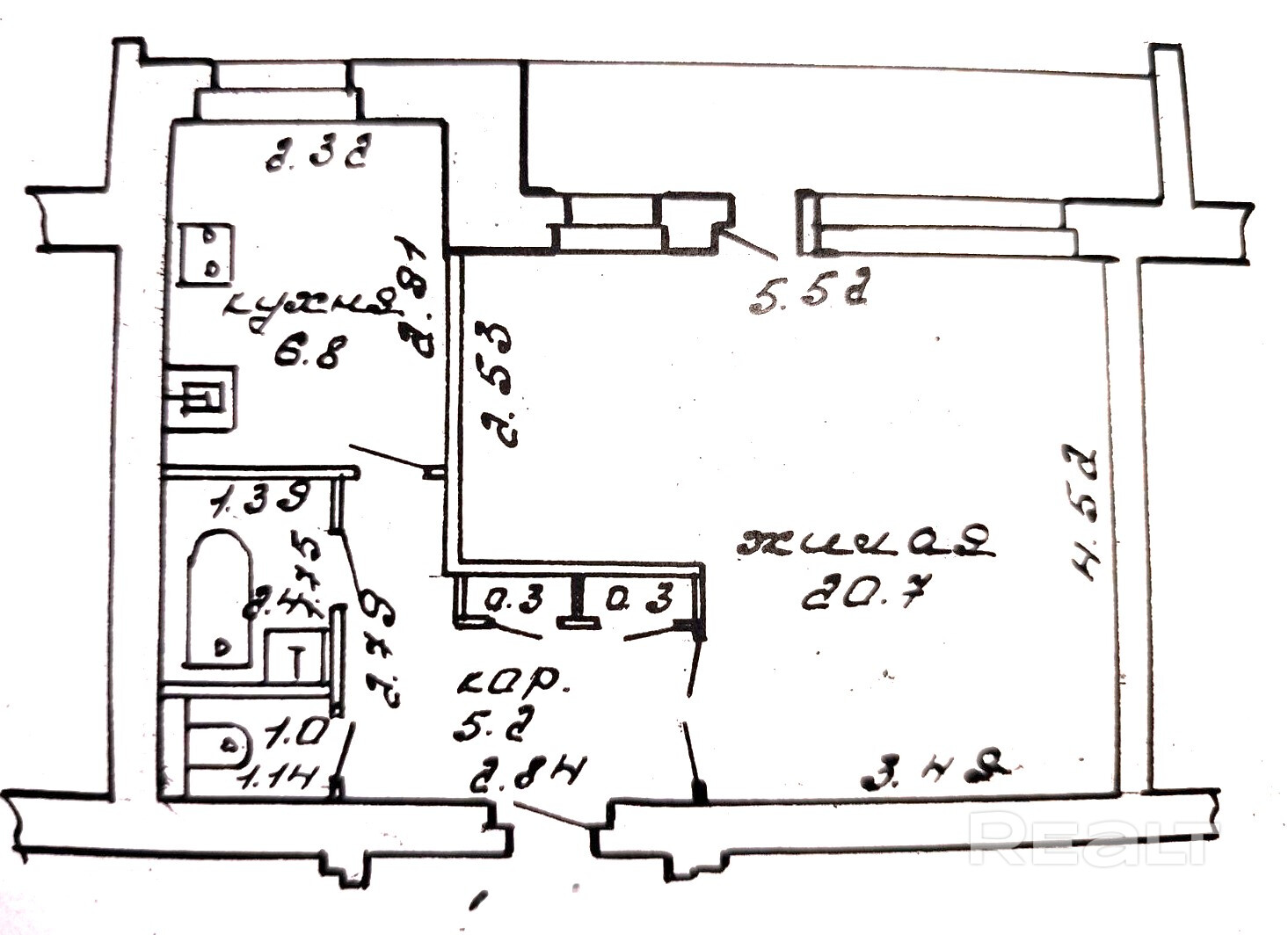 Раздельный санузел, лоджия застеклена. Просторная жилая комната с двумя окошками, что позволяет сделать отдельную маленькую комнату.