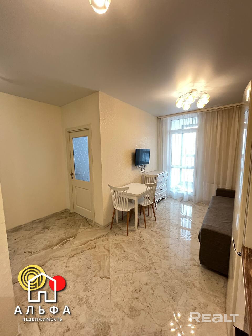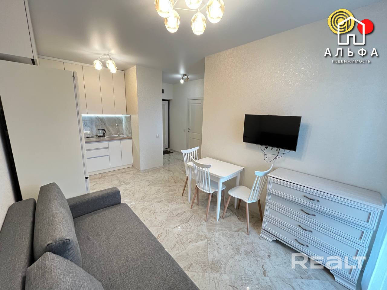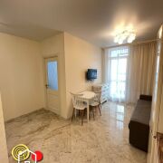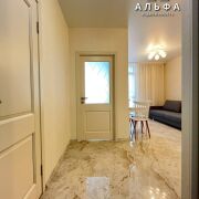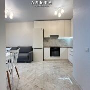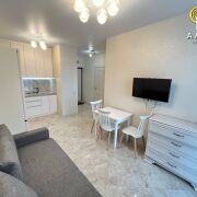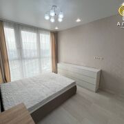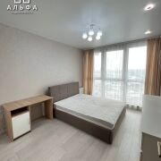 Кухня – гостинная, отлично оборудована. Есть встроенный духовой шкаф, плита с индукционной поверхностью, мощная вытяжка, холодильник - все это превращает кухню в настоящий кулинарный центр, где можно создавать кулинарные шедевры. В зоне гостиной установлен диван и обеденная группа. Просторная и светлая спальня с большим панорамным окном, укомплектована двуспальной кроватью и вместительным шкафом купе. В ванной комнате вас ждут современная плитка и сантехника, которые создают атмосферу свежести и чистоты.
