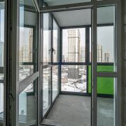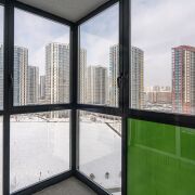 В квартире большие панорамные окна в пол с усиленными двухкамерными стеклопакетами. Застеклённый балкон.