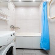 На полу плитка, ламинат, линолеум. Ванная комната облицована плиткой. Стеклопакеты, натяжные потолки, все межкомнатные двери заменены, входная металлическая дверь.