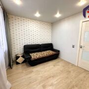 -В квартире сделан современный евроремонт: на полу ламинат, сделана стяжка, а натяжные потолки придают пространству особый шарм.