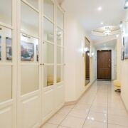 - В отделке квартиры использованы качественные материалы: на полу итальянская плитка с подогревом, в жилых комнатах ковролин. Вся квартира оборудована техникой известных брендов, что облегчает эксплуатацию и поддерживает высокий стандарт жилья.