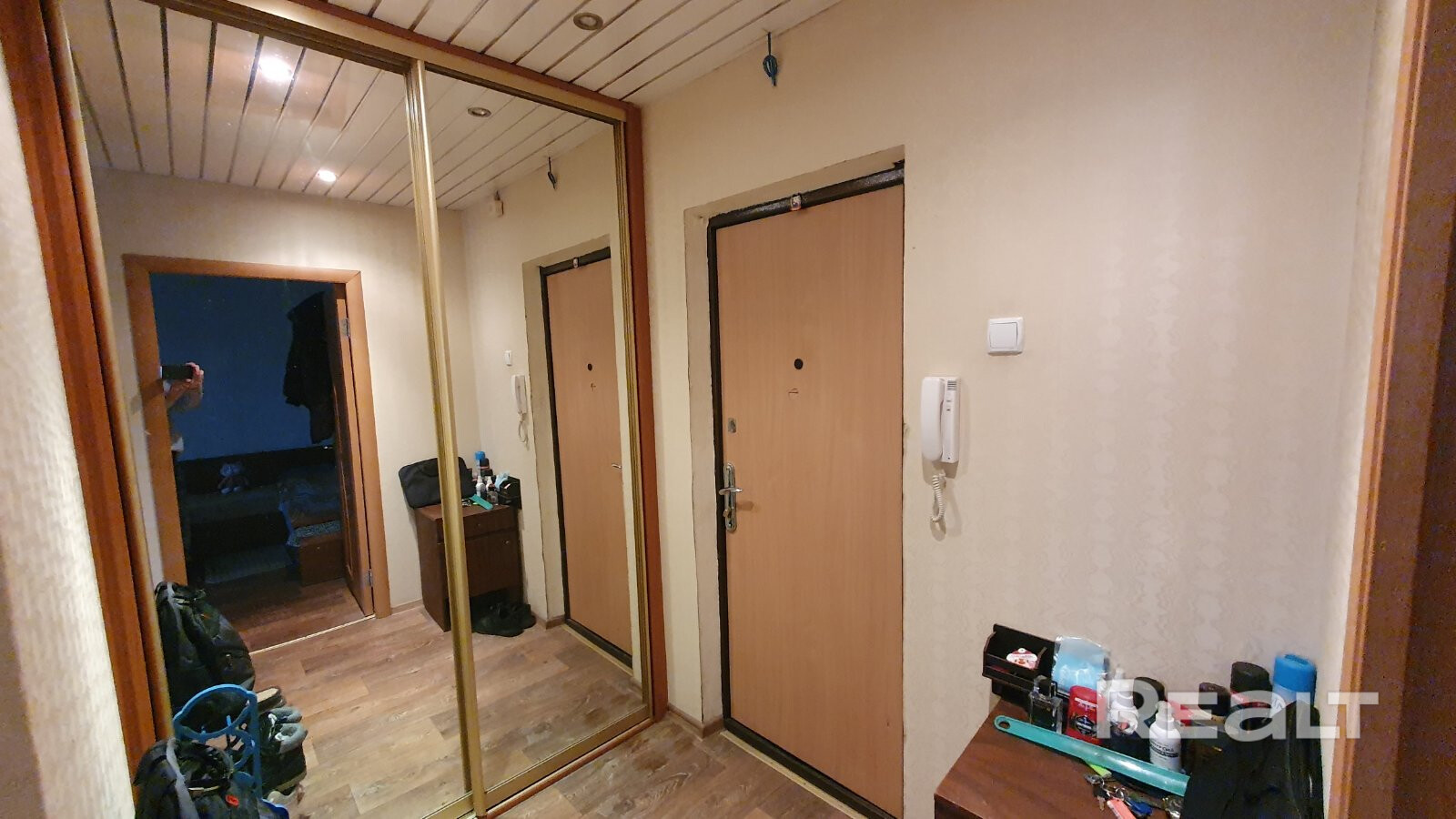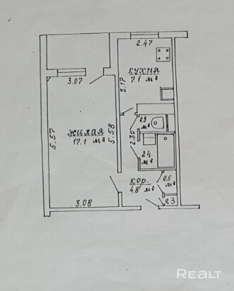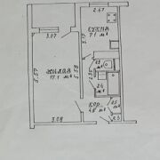 В квартире отдельная кухня 7,1 м кв и комната 17,1 м кв с большой, утеплённой лоджией. Санузел раздельный, облицован плиткой. В просторном коридоре встроенный вместительный шкафы-купе.