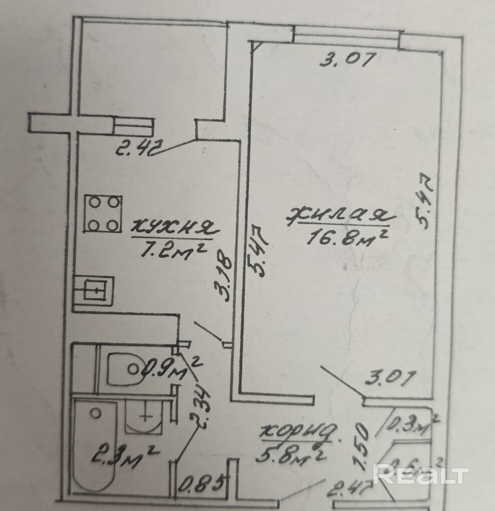 - Кухня оборудована: газовая плита, кухонный гарнитур, стол