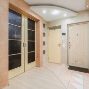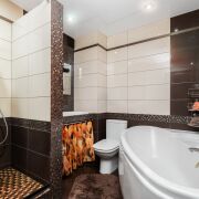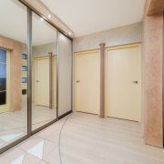 В прихожей вместительный шкаф-купе, совмещенный санузел с угловой ванной и душевой.