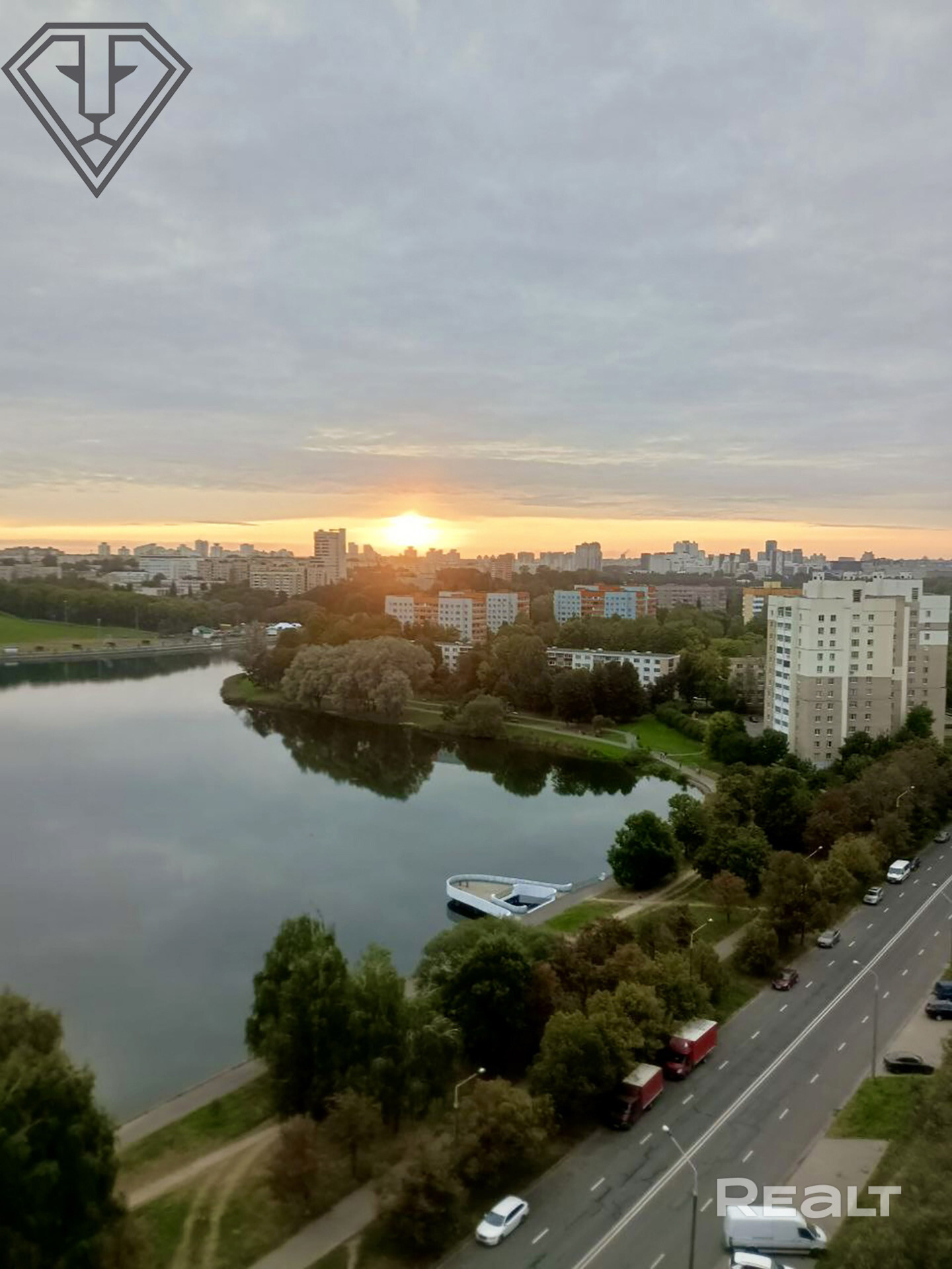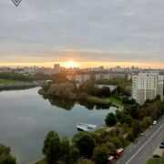 Панорамный вид из окон на закат, водохранилище и парк с 16 этажа.