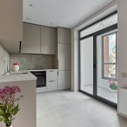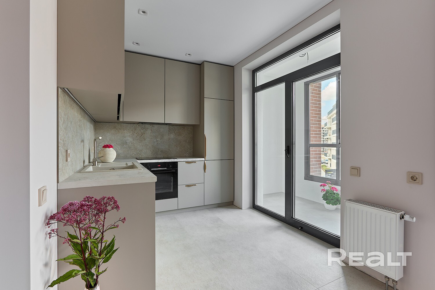 Стильная современная кухня со встроенной техникой Bosh останется новым хозяевам.