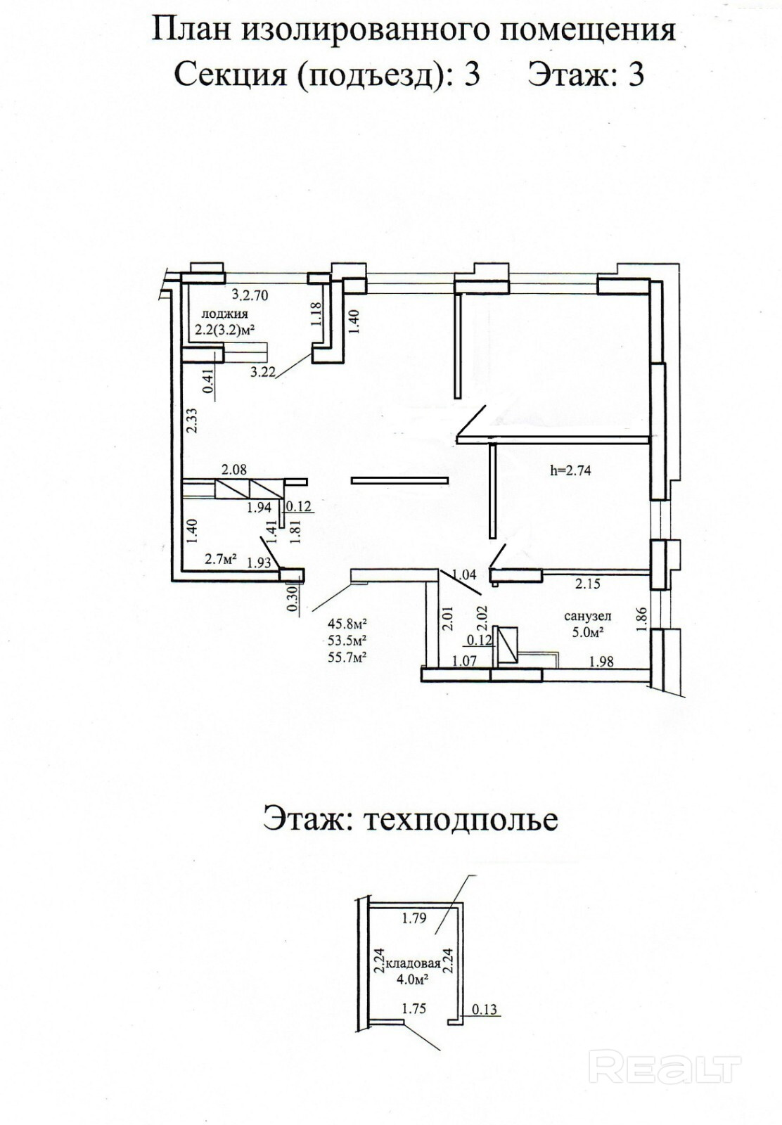 Есть застекленная лоджия, выход на лоджию осуществляется с кухни.
