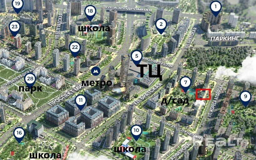 В каждом квартале современные школа или сад с бассейнами и современным оснащением