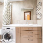 В квартире остается встроенная кухня с импортной бытовой техникой: варочная поверхность, духовой шкаф, вытяжка, шкаф-купе в коридоре, стиральная машина, мебель в ванной.