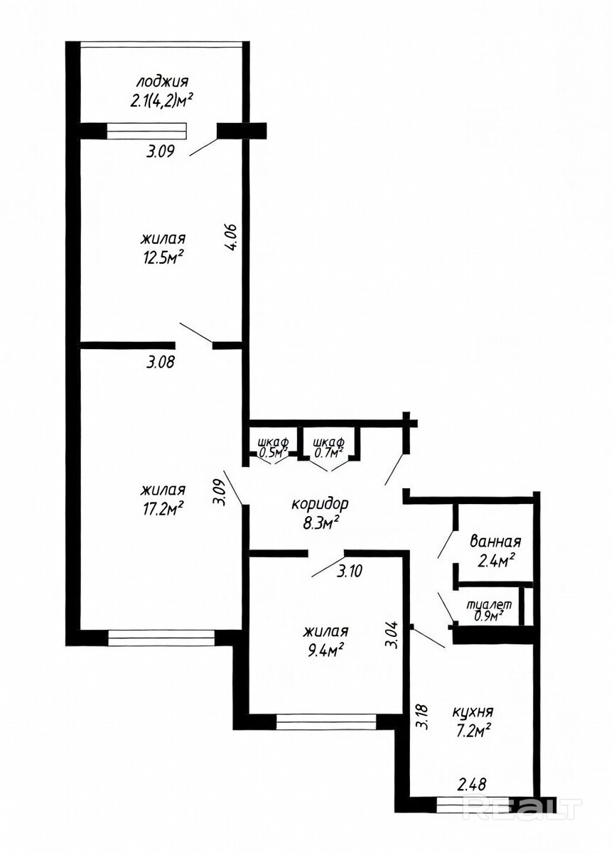 Просторная 3-комнатная квартира в Зелёном луге