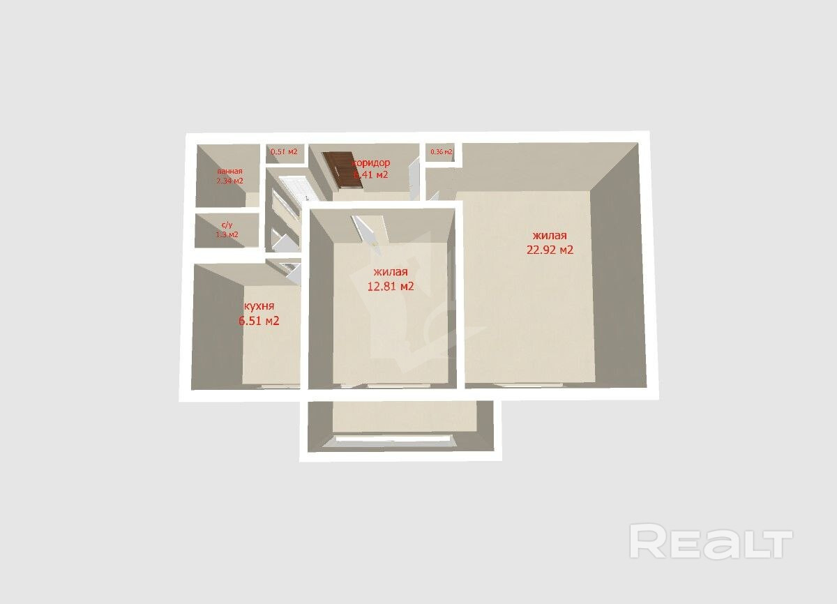 Площадь квартиры составляет 53.15 кв.м., из которых 35.73 кв.м. занимают две светлые и просторные комнаты (22.92 кв.м. и 12.81 кв.м.), а также уютная кухня площадью 6.1 кв.м. Дополняет комфорт застекленная лоджия, где можно наслаждаться утренним кофе или вечерними закатами.