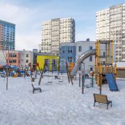 Квартал «Евразия» очень зеленый, с множеством цветов и кустарников, в их окружении расположились площадки для отдыха, спорта и детских игр. Внутри квартала построен большой детский сад на 230 мест, а также открыты магазины, аптека, помещения для физкультурно-оздоровительных занятий и кафе. Всего в нескольких минутах ходьбы будет расположен городской парк с зоной озеленения в 40 га.