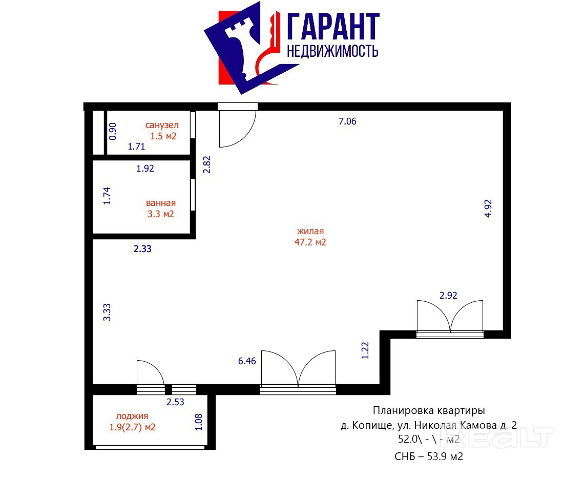 Квартира находится в современном доме, 2020 года постройки, расположена на 3-м этаже 8-этажного дома. Современные характеристики квартиры включают площадь по СНБ – 53.9 кв.м, общая площадь – 52.0 кв.м, высота потолков 2,59 м, что создает ощущение простора и комфорта. Французские окна с двойными стеклопакетами (окна в пол), благоустроенная лоджия, раздельный санузел.