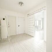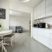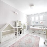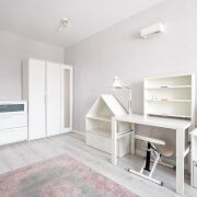 В квартире выполнен современный ремонт в светлых тонах, грамотно зонировано пространство: уютная кухня (10,2м2), просторная гостиная (14,0м2), спальня (12,4м2), оборудованная и полностью меблированная детская комната (17,1м2) и отдельная гардеробная — всё для вашего удобства!