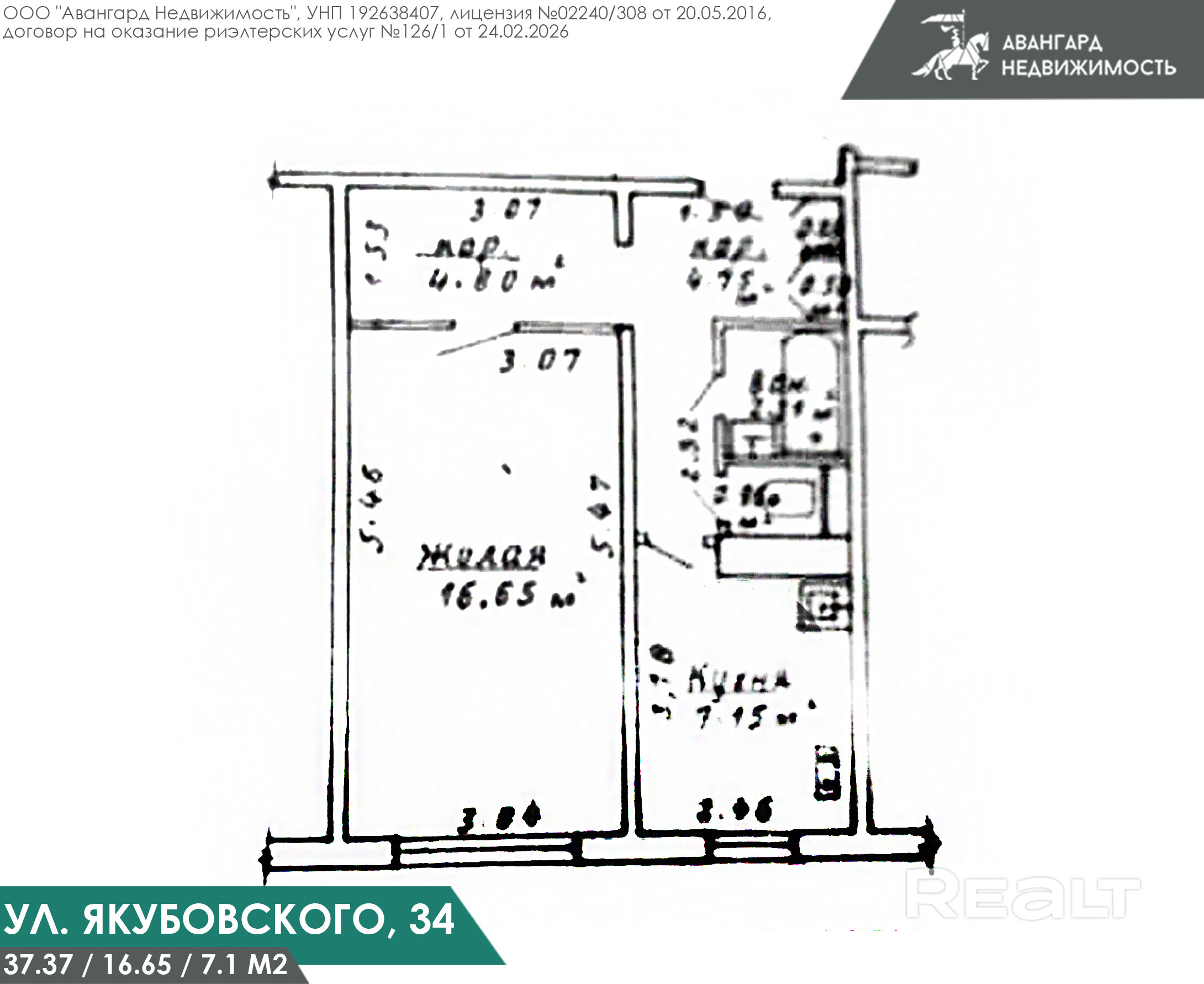 Купить 1-комнатную квартиру в Минске, ул. Якубовского, 34