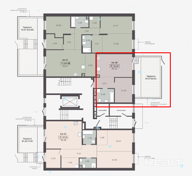 Квартира с террасой на 1 этаже - 27,37м2.