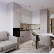 Евродвушка 39,9 м² с панорамным видом на 20 этаже. Витражные окна. Открытый вид без. Потолки 2,70 м. Формат: спальня + кухня-гостиная. Есть продуманный дизайн-проект — можно сразу начинать ремонт без лишних затрат времени и денег. Лоджия без отделки — реализуйте пространство под себя. Каркасно-блочный дом. Закрытая территория, детская площадка, велопарковка. Комната для мойки домашних животных. В квартире разведена электрика и оштукатурена