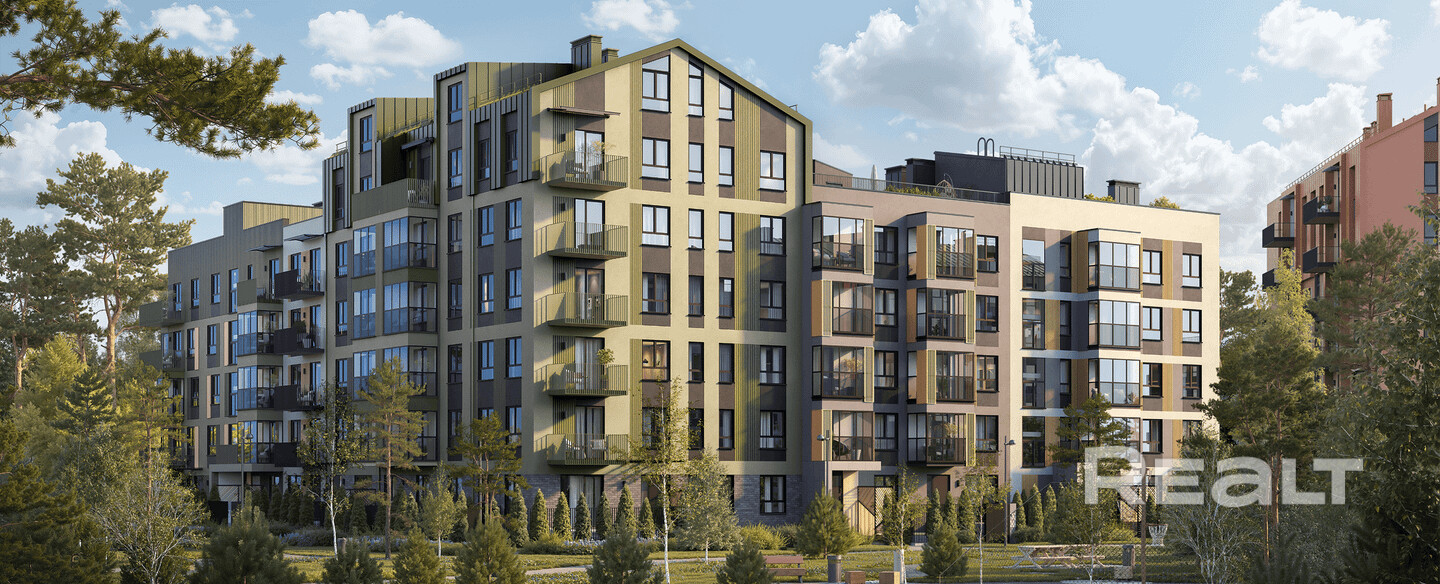 С двух сторон обрамлен зеленым коридором, обеспечивая жителям живописные виды из окон.