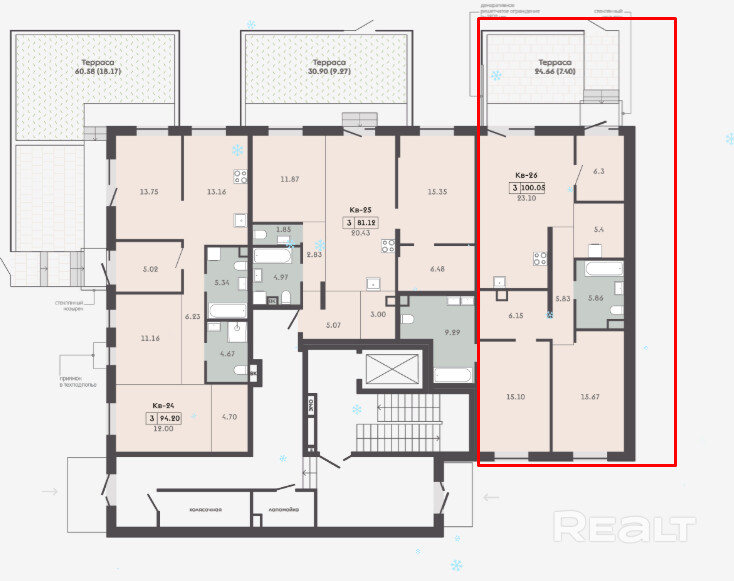Квартира с террасой - 24,66м2.