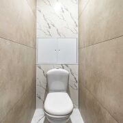 Установлены качественные стеклопакеты с немецкой фурнитурой, в том числе и на лоджии. Новые качественные межкомнатные двери. Разведена и добавлена электрика. На полах - плитка «белый мрамор» и ламинат. Все потолки окрашены. В санузлах: плитка цвета «бетон», электрический полотенцесушитель, новая сантехника с японскими смесителями.