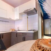 Кухонная зона: Компактная кухня площадью 6,2 м2 оптимальна для размещения необходимой бытовой техники и обеденной группы.