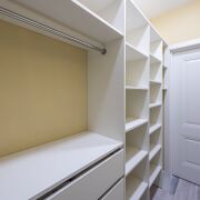 На полу — ламинат и плитка, установлены напольные плинтусы из крашеного МДФ.