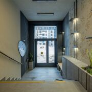 В подъезде большой бесшумный лифт, есть помещения для мытья лап домашних питомцев и хранения колясок, а также полки для book crossing, сквозной подъезд. Видеонаблюдение.