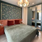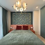 — Спальную зону с двуспальной кроватью, встроенной системой хранения, продуманным освещением и атмосферой уюта.