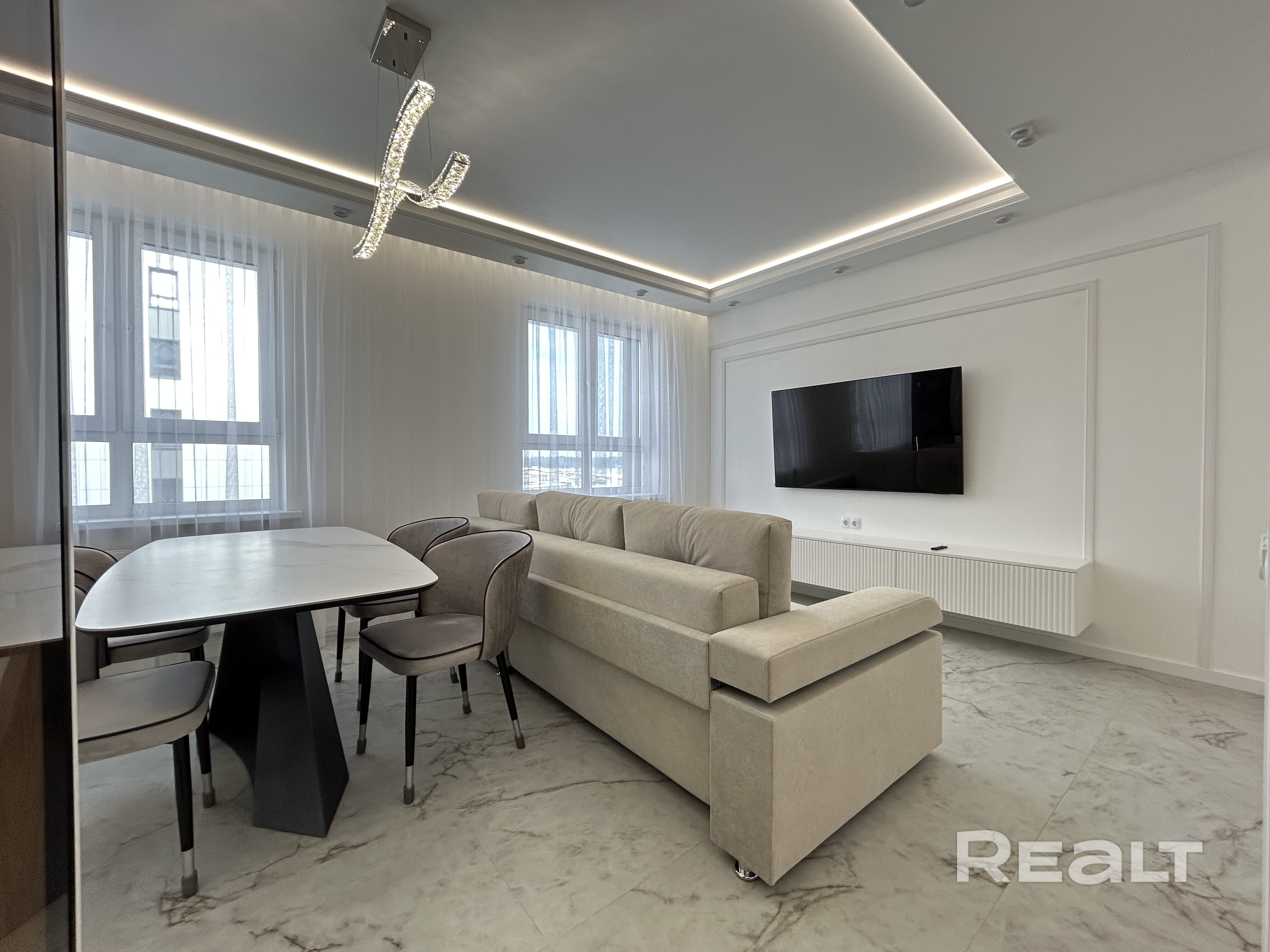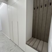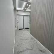- Плитка Argenta в прихожей, гостинной и кухонной зоне (размер 60х120), в спальне ламинат Egger. По всей квартире коммуникации (теплые полы), самого теплого пола нет.