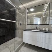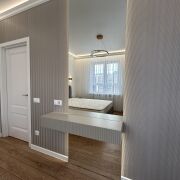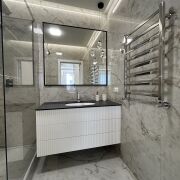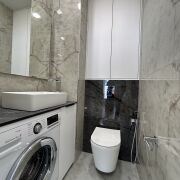 - Раздельный санузел: санузел №1 - душ, водяной полотенцесушитель, подвесная тумба материал МДФ, столешница искусственный камень, санузел №2 - подвесной унитаз, инсталяция, гигиенический душ, стиральная машина LG, столешница искуственный камень, место для белья.