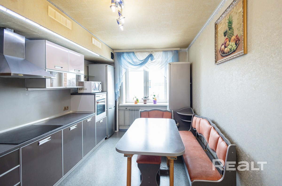 Просторная прихожая с вместительным шкафом для верхней одежды. Большая светлая гостиная. Две отдельных спальни выходят в тихий двор. Кухня-столовая с кухонным гарнитуром, техникой и столовой группой. Раздельный санузел, туалет с умывальником и писсуаром. Межкомнатные двери покрыты дубовым шпоном.
