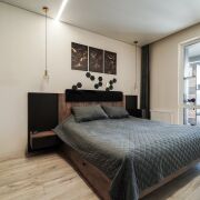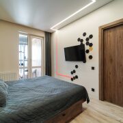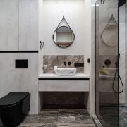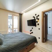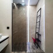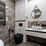 Санузел с инфракрасным душем, есть бойлер. Сантехника Omnires. Холодильник Bosch, стиральная Lj, посудомоечная машина Midea, кондиционер Lj. Квартира продумана до мелочей.
