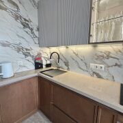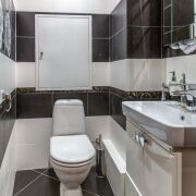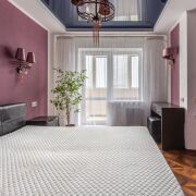 - Современные отделочные материалы: потолок из гипсокартона, качественные натяжные потолки, практичное напольное покрытие (плитка, кварц-винил).