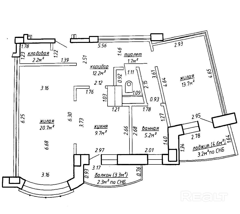 - Две изолированные комнаты: 13.7 м2 и 20.7 м2
