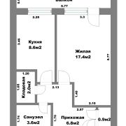 Общая площадь квартиры- 42,1 м2.