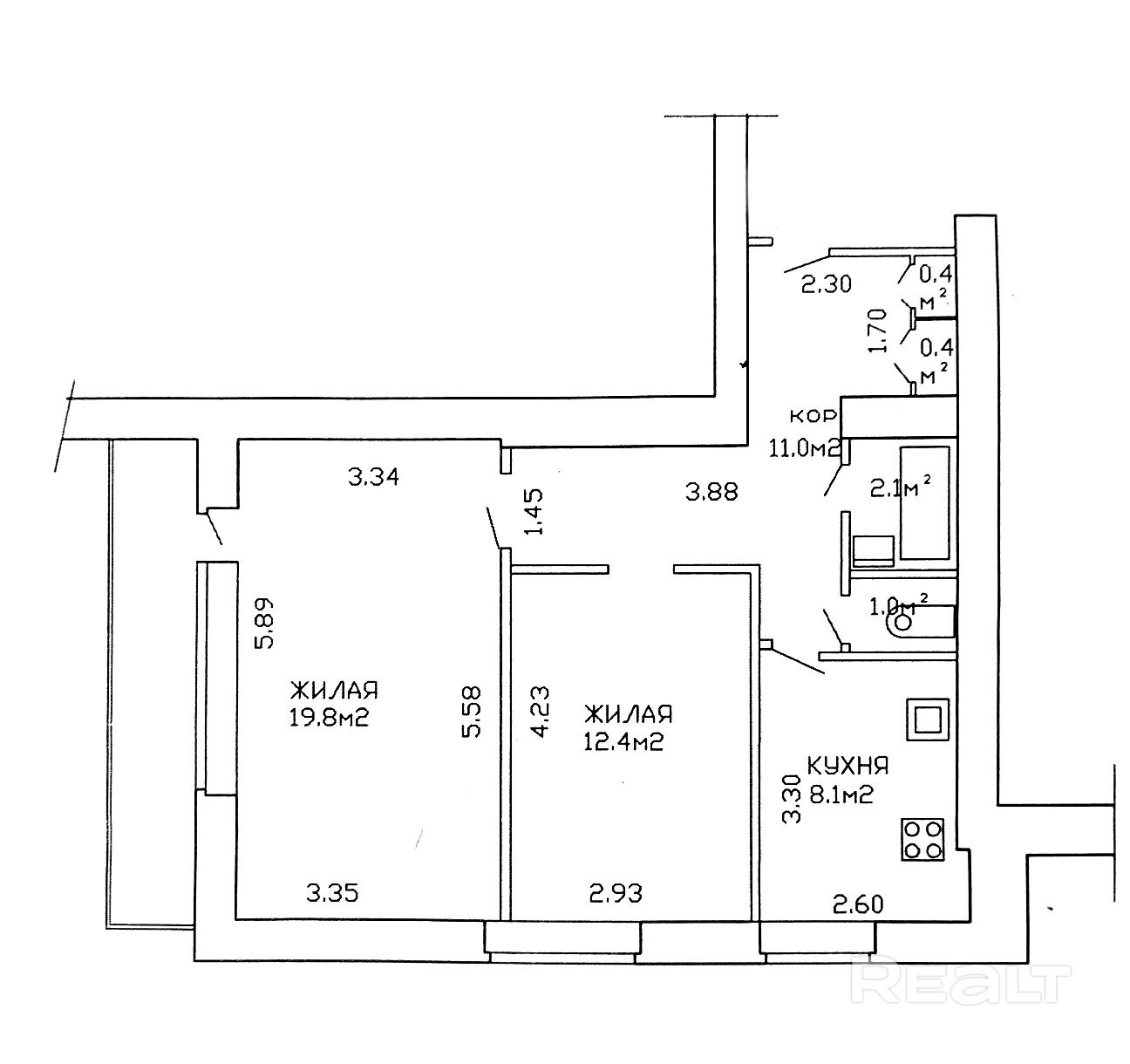 · Общая площадь 55,2 кв. м. — комнаты изолированные и очень просторные!