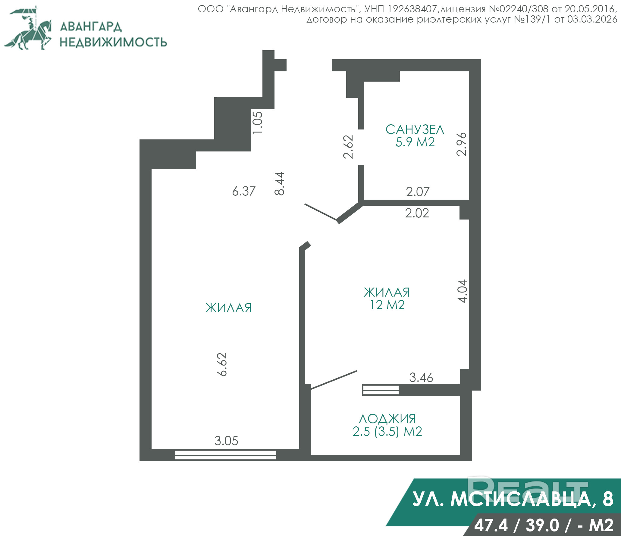 47.4 м²