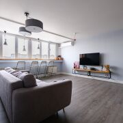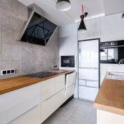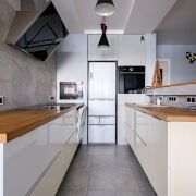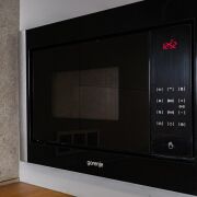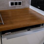 Кухня, с фурнитурой Blum, оснащена качественной техникой: духовой шкаф, микроволновая печь и вытяжка Gorenje; индукционная варочная панель Electrolux; посудомоечеая машина Bosch.