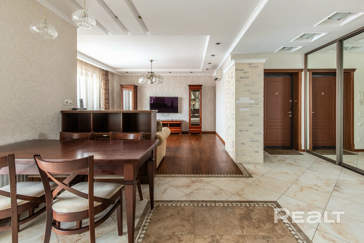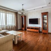 Площадь квартиры по СНБ составляет 70.9 кв.м. Ремонт квартиры выполнен в классическом стиле в светло-коричневых тонах. Ламинированное напольное покрытие в жилых зонах, в остальных зонах плитка. Установлены кондиционеры. Готова для проживания или сдаче в аренду.