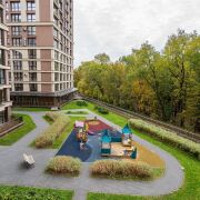 - Особое внимание уделяется панорамному застеклённому балкону - уютному месту, где можно встречать рассветы, любуясь зеленью за окном. Вид выходит на ухоженный внутренний двор с детской площадкой и прогулочной зоной - тихое, безопасное и приятное пространство.