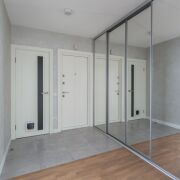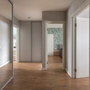 Межкомнатные двери с импортной фурнитурой, надёжная металлическая входная дверь с повышенной шумоизоляцией. Пол — паркетная доска и плитка, установлены тёплые полы. Зонированное многоуровневое освещение создаёт атмосферу уюта и подчёркивает стиль пространства.