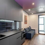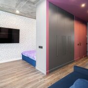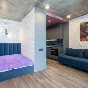 Удачная планировка с выделенной спальной зоной, двухспальный диван 160х2000 с подъемным механизмом, зонированное освещение.