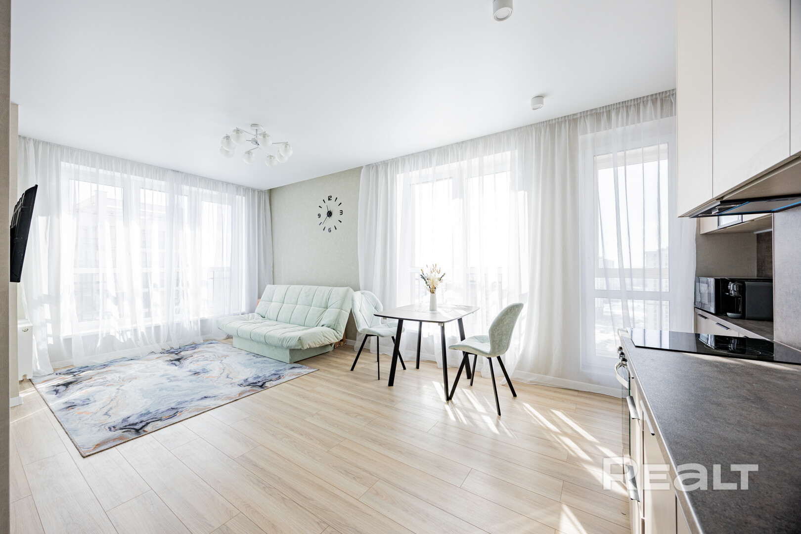 Это монолитно-каркасное здание 2024 года постройки, благодаря высокому этажу открывается захватывающий вид на весь Минск, за чашечкой кофе, чая или бокалом вина вы получаете эксклюзивный декор через панорамные окна — огни ночного Минска, имеющееся мебель и кухонная техника обеспечит комфорт и уют.