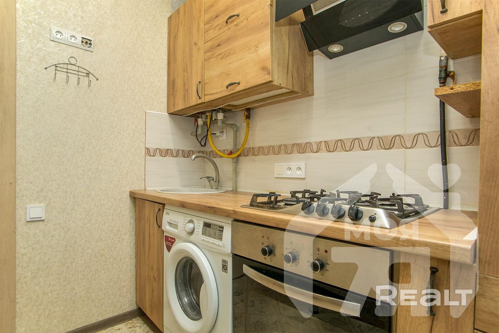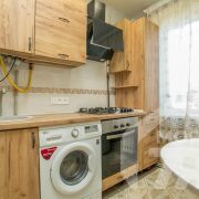 -Кухня оборудована удобным гарнитуром и бытовой техникой. В комнате предусмотрен встроенный шкаф-купе, который экономит пространство и поддерживает порядок.
