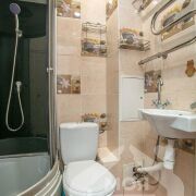 -Санузел совмещенный, облицован плиткой, установлена душевая кабина.