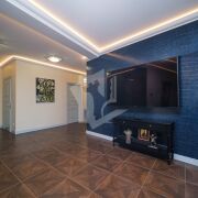 Гостиная 34 м кв соединена с кухонной зоной 17.5 м кв, что позволили создать комфортное пространство для совместного времяпрепровождений большой семье!
