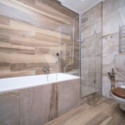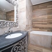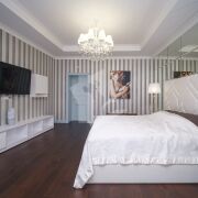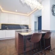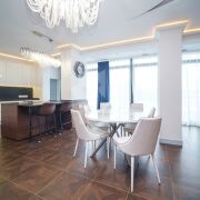 Расположена на 6 этаже. Три раздельные спальни с панорамными видами на Немигу. Оборудованы мебелью. Все материалы отделки европейских производителей высокого качества. Мебель сделана под индивидуальный заказ.